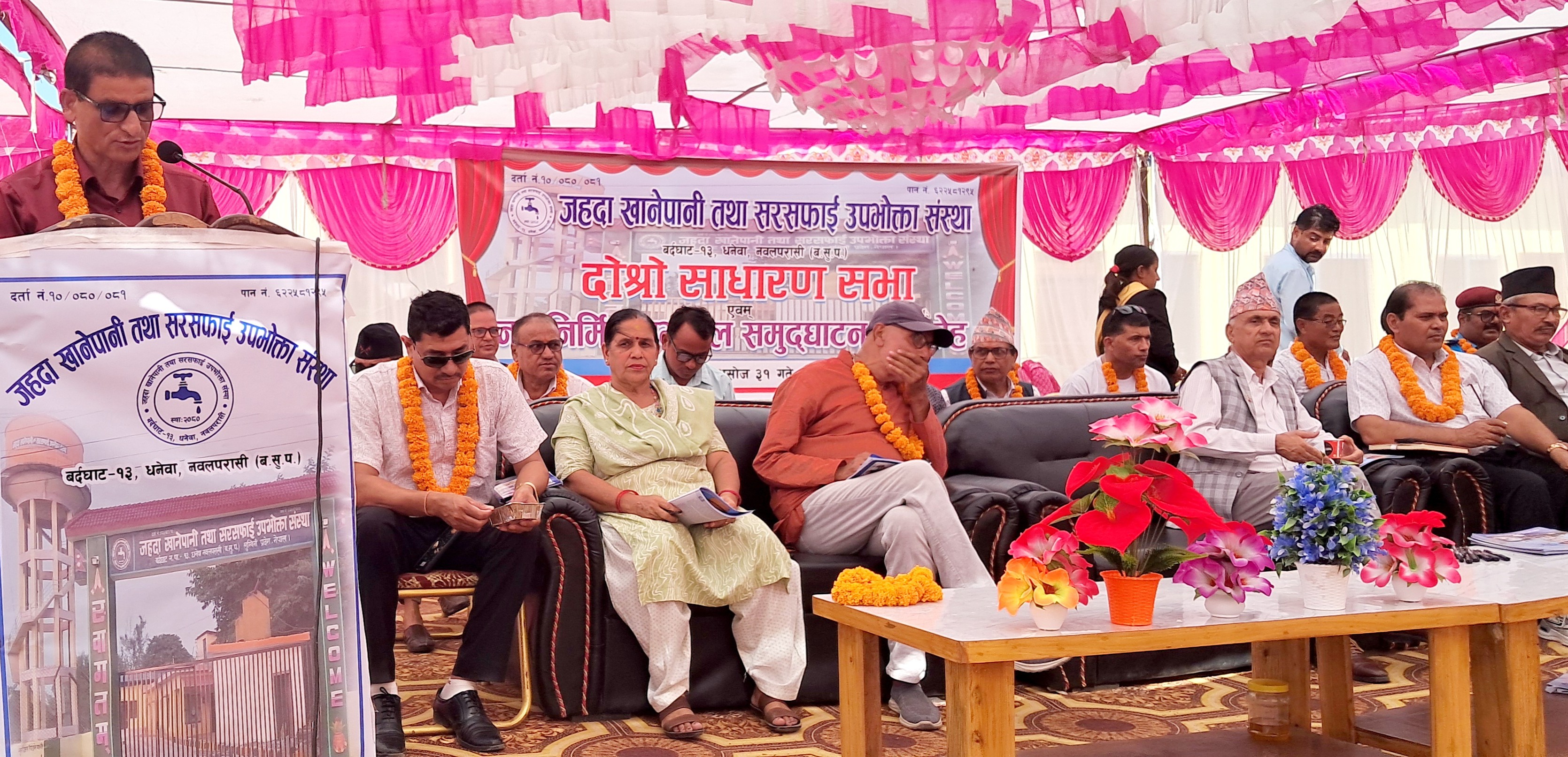 संस्थाका अध्यक्ष कृष्णप्रसाद गौतमको अध्यक्षता र लुम्बिनी प्रदेशका पूर्व साँसद एवं नेकपा एमाले नवलपरासी जिल्लाका अध्यक्ष दिपेन्द्रकुमार अधिकारीको प्रमुख आतिथ्यमा साधारण सभा तथा नव निर्मित सभाहलको समुदघाटन गरिएको छ ।